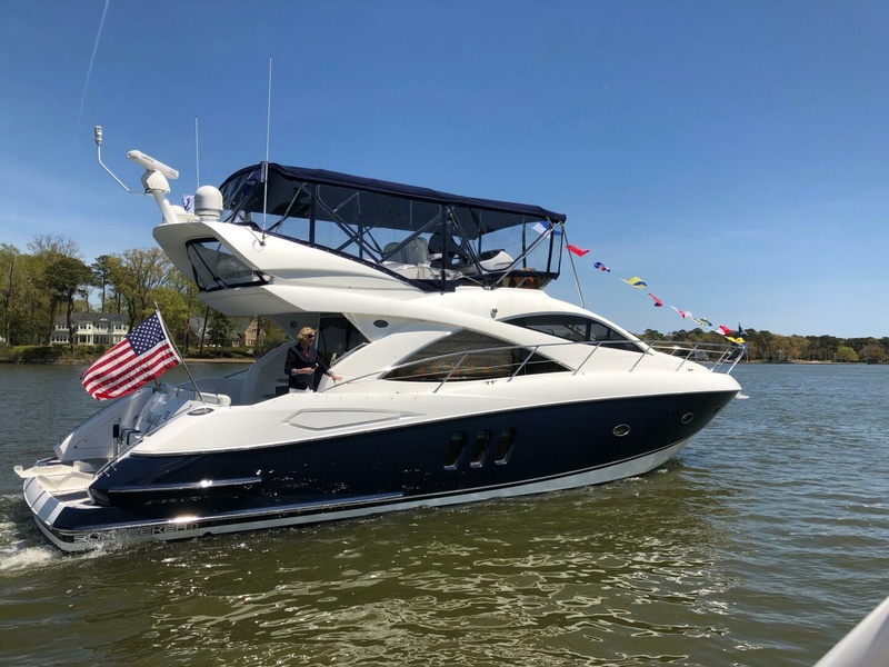 This Sunseeker Manhattan has been meticulously maintained and cared for by its owners over the last few years. The interior and exterior of the boat has seen a complete upgrade all within the last few years. New Quartz countertops throughout, new carpets throughout, new curtains, custom beds and bedding, new Tvs, LED lighting, new full size refrigerator in galley and new custom full Flybridge enclosure with Strata glass isinglass. The Flybridge has Garmin electronics to include a 7616 Chartplotter, radar and vhf. The engines are Mann 800s that have around 1240 hrs. on them. They have had the no expense spared on being ahead of Maintenace when it comes to them. They have recently had the coolers, turbos, oils, filters, seawater pumps and belts serviced and are ready to go anywhere your heart desires. The Blue on the hull sides have been painted with Awlcraft 2000 and the white on the topside has just been fully ceramic coated for ease of cleaning. The boat comes with a 1000lb Davit on the transom for your dingy. It is equipped with a bow and stern thruster. The bow thruster is brand new. All of the air conditioners have been replaced over the last few years. To many details to list. You come see it to appreciate it.