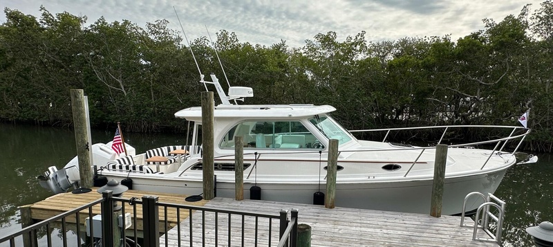 • Air conditioning with reverse cycle heat in helm deck, 16K BTU