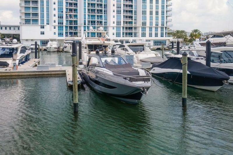 The 2022 Azimut 47 Verve is a luxurious and high-performance motor yacht located in Sunny Isles offers sleek design, a spacious interior, and impressive speed with quadruple Mercury 450hp engines. She has a Seakeeper stabilizer, Raymarine electronics package, port side opening side gate, full wet bar with fridge/icemaker and lots of storage, as well as, UPGRADED estech decking.