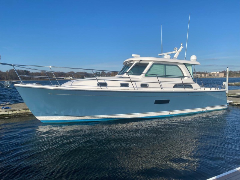 Low hours (515), new Kohler generator, updated Raymarine GPs’s, Volvo pod drives, stunning Stars and Stripes blue awlgrip and stunning cherry interior with teak and holly sole. “Dove” does it all, wrapped up in Sabre good looks and quality.