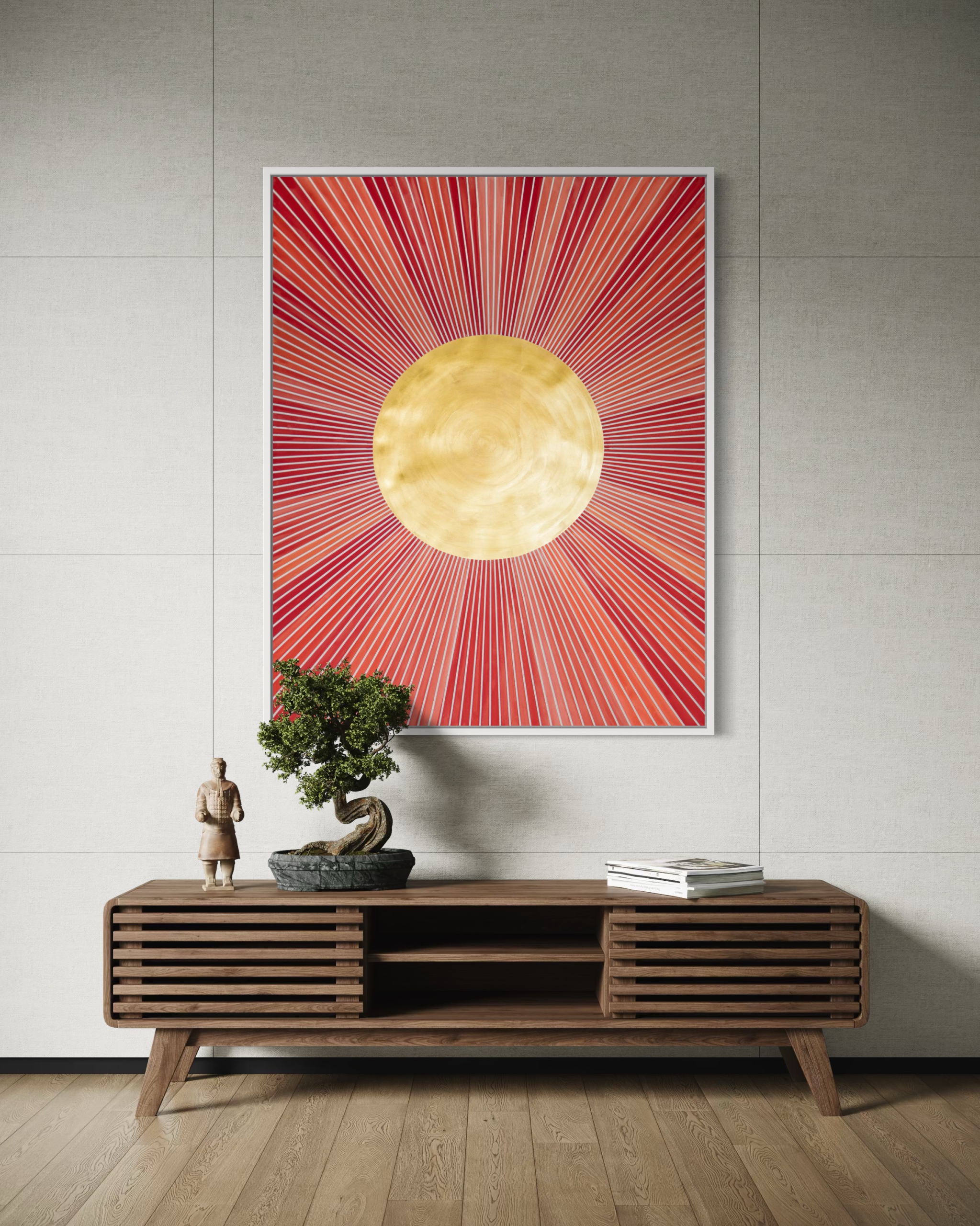 Watercolor and gold on archival watercolor paper (unframed) From the Prayer for the Earth Collection A radiant vision of what’s possible, A Future of Harmony and Respect is both a prayer and a promise. With a golden center expanding into glowing rays of red and orange, this piece evokes a rising sun—symbolizing renewal, awakening, and our collective potential for peace. Beneath the gilded circle lies a universal prayer for the planet, handwritten in English, calling in a future grounded in respect for all life. Embedded with a scannable chip, the painting offers an immersive experience: scan to see and hear the prayer, transforming the artwork into a daily ritual of mindfulness and intention. Part of Ekaterina Sky’s Prayer for the Earth collection, this unframed piece invites collectors to center harmony in their homes and lives. It serves as a visual altar—a reminder that what we revere, we protect. And what we protect, we shape into our shared future.