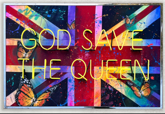 Acrylic & Neon on Cotton Flag w/ Chrome Steel Frame