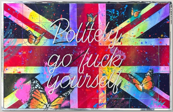 Acrylic & Neon on Cotton Flag w/ Chrome Steel Frame