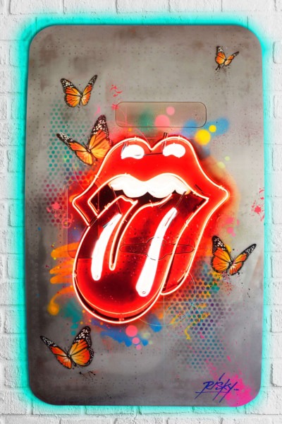 Acrylic, Aerosol, Kandy Car Paint, Crushed Abalone with Neon on 747 Aircraft Door