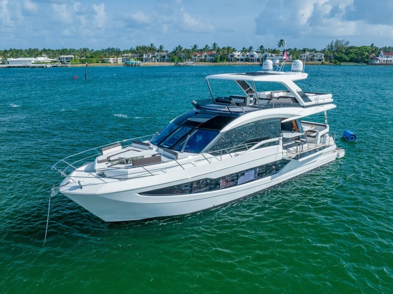 The Galeon 640 Fly is a Euro style motor yacht with many unique features. From the very large flybridge with factory hardtop to the spacious cockpit, “drop down side decks”, foredeck seating/tables and hydraulic swim platform. Her exterior offers excellent entertainment areas for everyone.