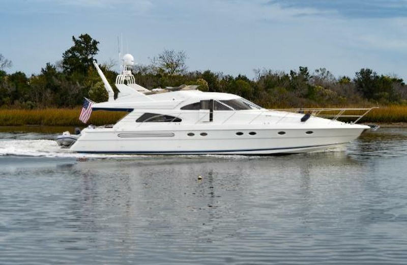 65′ Fairline Squadron – Fresh water yacht until 2013 with 4 Staterooms plus two (2) separate crew rooms. Many updates including custom Open Galley with granite island, mahogany floors, dual Garmin 7212 units, sun pads, cushions, Bimini Top, sunscreens and covers, 7 Flat Screen TV’s. Lumishore underwater LED Lights. Hull and Top Side painted. Giving her look and shine of a new vessel.
