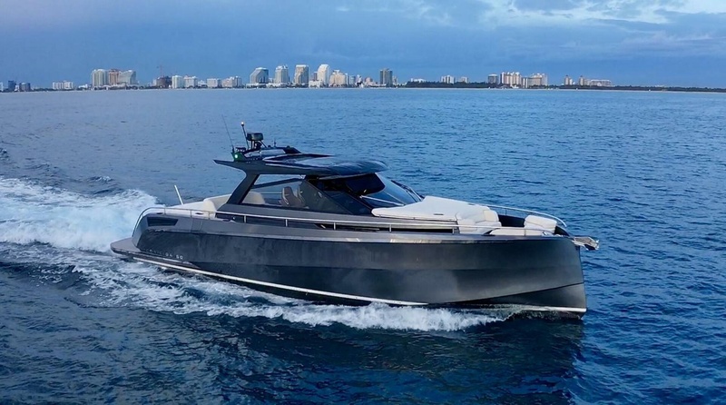 The stunning new brand that is a collaboration of award winning Dutch shipbuilder Steeler and Iconic Yacht Group introduces the all new Dutch American 50 DA. The 50 DA boasts options that include three Garmin 17″ screens, VHF, Humphree active interceptor and trim systems, generator, hydraulic swim platform, 26,000 BTU cooling and heating system, innovative electric hardtop, flexiteak floors, upgraded Maestro audio system, TV in dining area, digital switching, owners cabin with seperate WC and shower, electric glass ceiling that opens in the dining room/atrium area, multiple refrigerators, Corean countertops, stove, dynamic positioning, sunroof in hardtop, Seakeeper 6, underwater lights, metallic painted hull and superstructure all in an aluminum hull built to superyacht standards. Powered by twin Volvo IPS 800’s