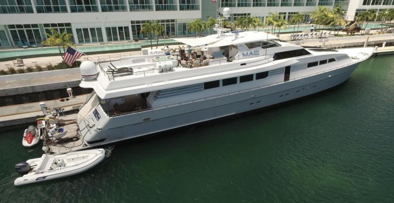 Launched in 1989, MAC is a five-stateroom layout with the full beam owner’s suite located on the main deck. Her 1500 hp 3508 Caterpillar engines have less than 200 hrs and give her a cruise speed of 14 knots plus a top speed of 21 knots. She has a long list of desirable features and very efficient operation for her size making this pedigreed vessel a great opportunity. Ready for viewing and located in Fort Lauderdale, FL.