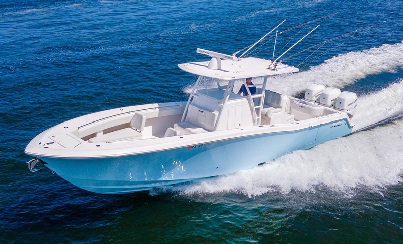 Her ice blue hull color pops with the fresh compound & wax she just received. The triple 400 Mercury Verados have received the routine service every 100 hours and provide speeds up to 74mph and a comfortable cruise at 45-50 mph. Her suite of Garmin electronics provides accurate and safe navigation ensuring you will get to the fishing grounds with no issues.