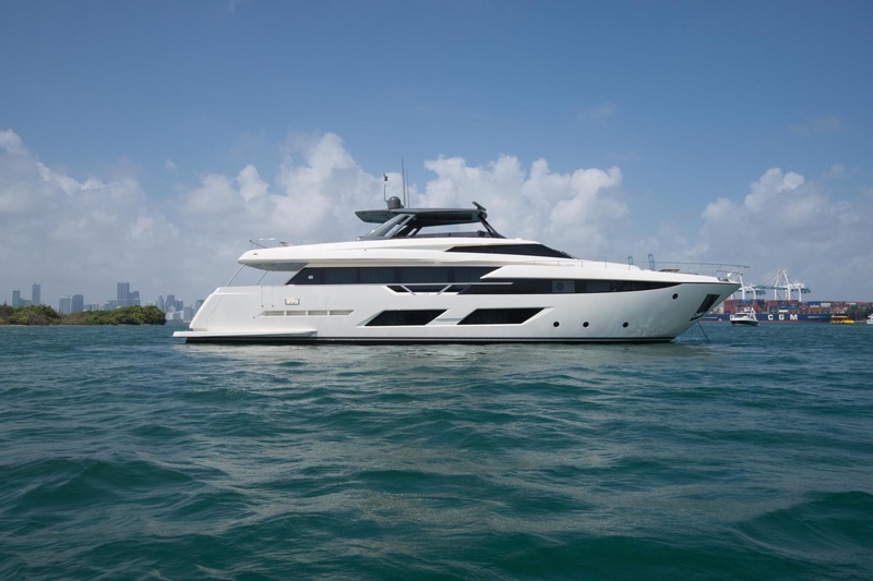 Ferretti Yacht 920, the splendid flybridge stands out due to the ground-breaking introduction of the “wide body” concept. In addition to giving the yacht an imposing presence on the water, the raised forward section of the hull has also allowed a “wide-body” master suite to be included on the main deck. In addition to the raised forward section, other stunning aspects include the remarkable number of relaxation spaces and the luxurious furnishings in the outdoor areas. The magnificent interiors rival the versions found in higher category models. The pilot house is a technical area with a “futuristic” design. The captain can run the entire yacht from here thanks to a large control station, equipped with a next-gen steering system and a number of touchscreens displays that encompass all of the on-board monitoring systems and navigation instruments.