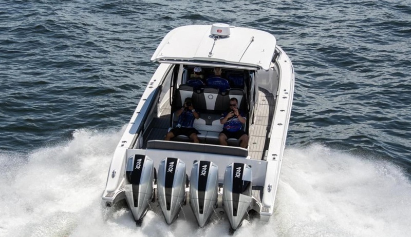 This FOUNTAIN 43 is in brand new condition. With only 96 hours on her quad 450R Verado engines and only 1 owner she is a unique purchase opportunity. Fully specced out with multiple upgrades; triple Simrad 16” screens, Autopilot, HALO Radar, Broadband Sonar, WiFi, AIS, JL upgraded speaker system, Underwater lights, LED-mood lights in multiple colors, reversable A/C, Performance Pack and Joystick Piloting system just to name a couple.
