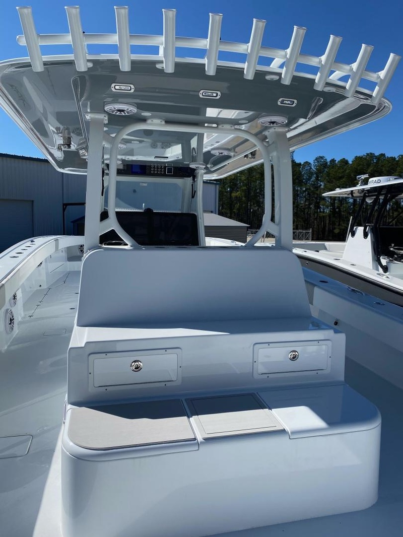 This 2023 47′ Freeman is Brand New, No Long Wait, Boat Just Got out of Production Never Splashed, 0 Hours on her Quad 300 Mercury Engines with Joystick Control, Garmin Electronics, Release Marine Seating throughout.