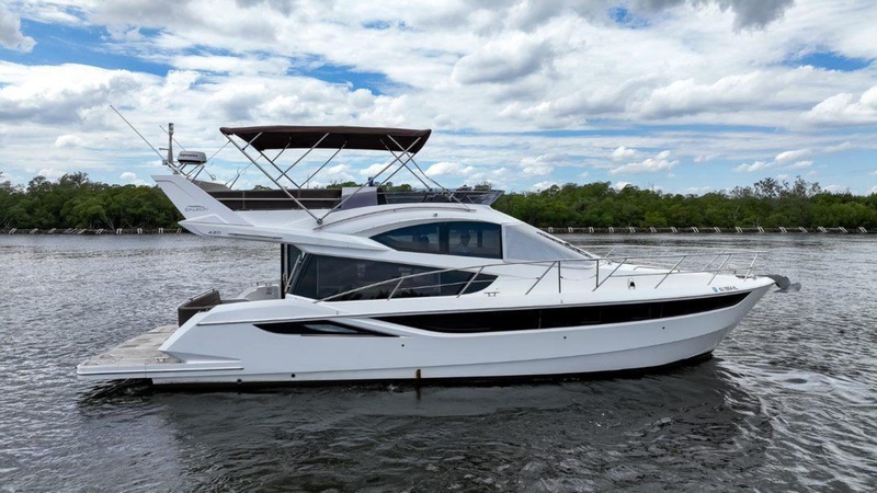 This 2018 420 Flybridge is equipped with Twin 435 HP D6 Volvo engines with 380 hours.