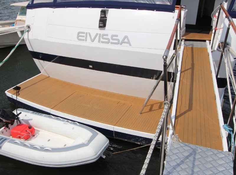 On the starboard side deck there is a passerelle and stairs to the flybridge. On the bow there is space for two water toys such as jet skis.
