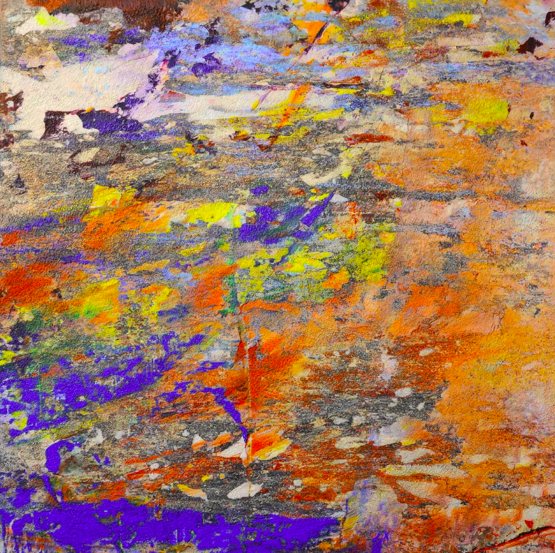 With this abstract painting, the process is precisely the same as that of my portraits. I blend all kinds of pictures until I have digital artwork. After this process, I printed the design and started making a lot of structures on top of the printed image with gel mediums. When I finish the structures, I paint intensely with oil paint until I am satisfied. The actual fixed media works are all one-of-a-kind originals. The size of this painting is 140x140cm. Mounted on an aluminium frame, created with photography, printed on paper, glued to the canvas and finished with gel medium for the structure, acryl, oil paint, and oil sticks and applied with brushes, pallet knives and my fingers.