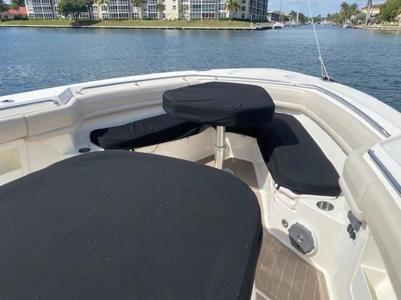 This 380 Outrage, BONE 4 TUNA, is equipped with triple 350HP Mercury Verados with only 300 hours and comes with a 5-year warranty.