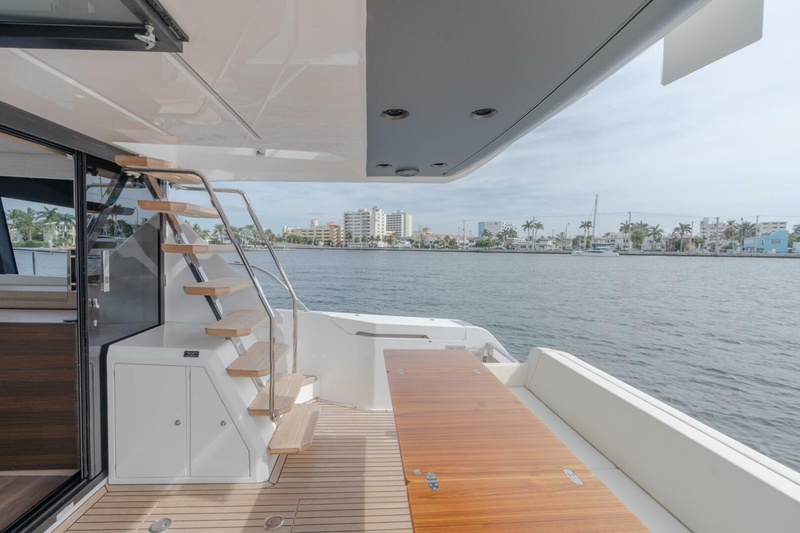 The 2023 Ferretti 50 Fly “Cecilonga” is a new model yacht that shows the design and engineering of the new era of yachting. This 50 Fly boasts three staterooms with a full beam master, and two heads. “Cecilonga” is powered by twin Cummins engines (550 hp) and paired with a joy stick so that the Owner/Captain can seamlessly run this yacht. Her ride is very smooth and effortless as a Ferretti design and is enhanced by a Seakeeper. Her salon is designed with the colors of the Mediterranean in a Milan luxury style. A few of her features include: Low engine hours (80), Swim Platform, SeaKeeper, SIMRAD electronics package and much more. If you are looking to upgrade your yachting experience from a condo to a Villa on the Sea, the 2023 Ferretti 50 FLY is the perfect yacht! Located and easy to see in Dania Beach, FL schedule your appointment today.
