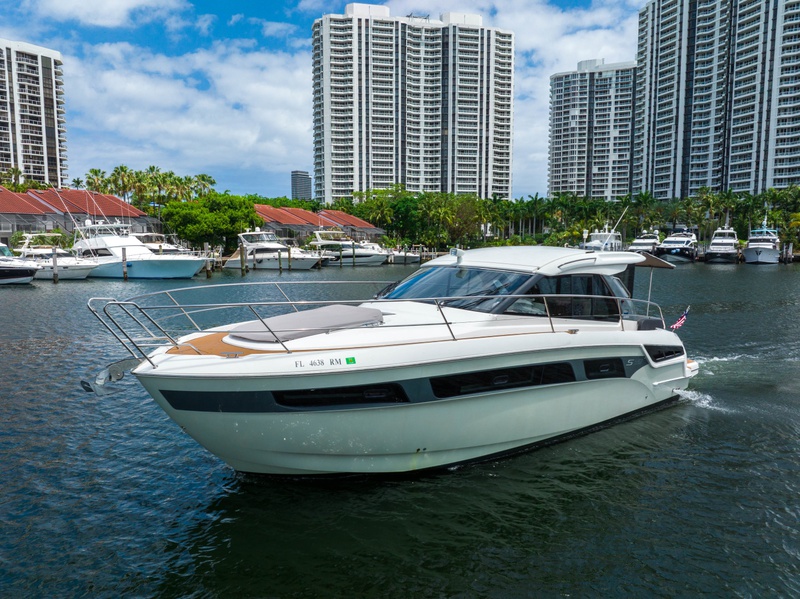 This 2018 40′ Bavaria S40 Coupe model comes well equipped with all the desirable options. With a well maintained and powered Twin 370hp Volvo Penta D6-370 EVCs, she gets up on plane swiftly and efficiently. This beautiful Bavaria Coupe has upgraded touchscreen navigation, joystick control, bow thruster, upgraded JL audio speakers and convertible sunroof, she will not disappoint! Call to schedule an appointment to see this 2018 Bavaria S40 Coupe today!
