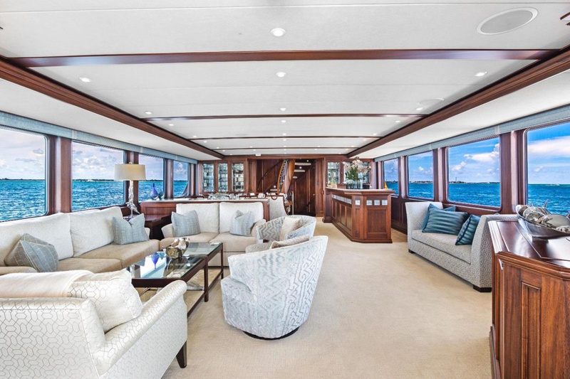 Her five-stateroom layout includes a full beam on-deck master, two VIPs and two twins.