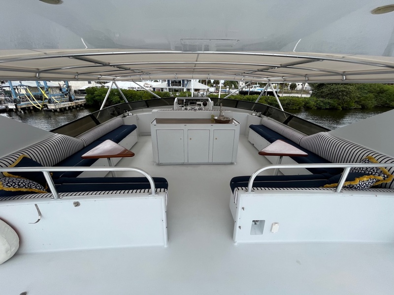 Cordina represents an opportunity to own a luxurious and classic Broward Motor yacht finished with a cherry wood interior that features a mid ship master suite with 2 ensuite heads, 2 guest staterooms with ensuite heads, a large salon, dining area, spacious country kitchen and 2 cabin crew quarters. The upper deck featured a covered area that includes the helm area, large entertainment area, davit and room for a dinghy.