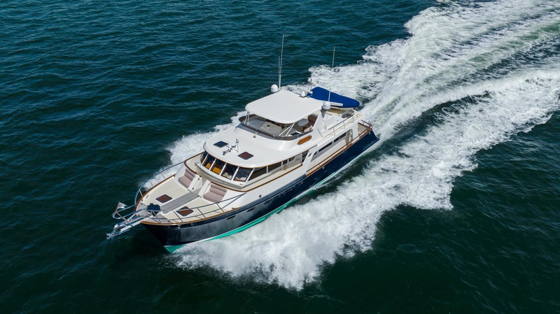 DISCONNECTED is a perfect example of the Marlow Explorer / 70E series of yachts, the most popular of their builds so far. One of the second generation of this series, she was built in their Tainan City, Taiwan facilities. When introduced at the 2002 Ft. Lauderdale Boat Show, the 70E immediately became the industry benchmark for larger, personal size yachts by offering the interior volume and accommodations of an 80’ boat in only 70’. It presented an opportunity for a couple to cruise with or without crew
