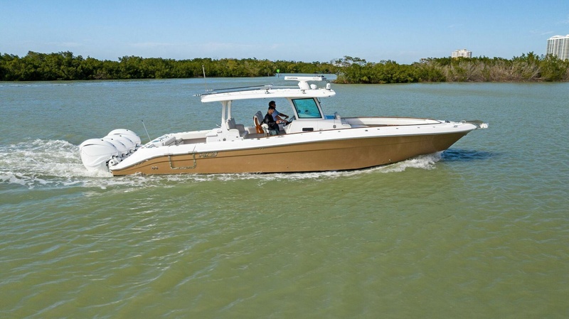 2021 42 HCB Lujo – “Eagle’s Zone” Center Console for sale offers a seamless blend of brawn and refinement that provides sustained offshore performance and an impeccable ride for any angler, diver, or cruiser. The newly designed hull cuts through the water like glass and the helm station has been redesigned to deliver comfortable seating, the topside features are amply spread throughout the bow and cockpit and the optional fuel capacity allows you to go on longer runs. Lujo has been regarded as the most agile and comfortable HCB on the market. Call today for a showing.
