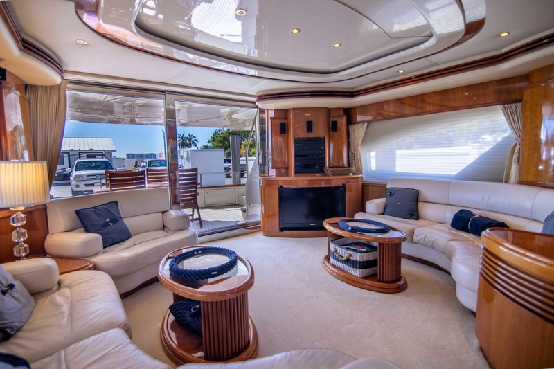 ENCHANTED LADY, 2001 AZIMUT 80′ MOTOR YACHT, shows beautiful inside and out from the open entertainment areas and staterooms to the spacious sun lounge areas outside. Enchanted Lady has recently undergone many mechanical updates to the A/Cs, raw water plumbing systems, and electronics.