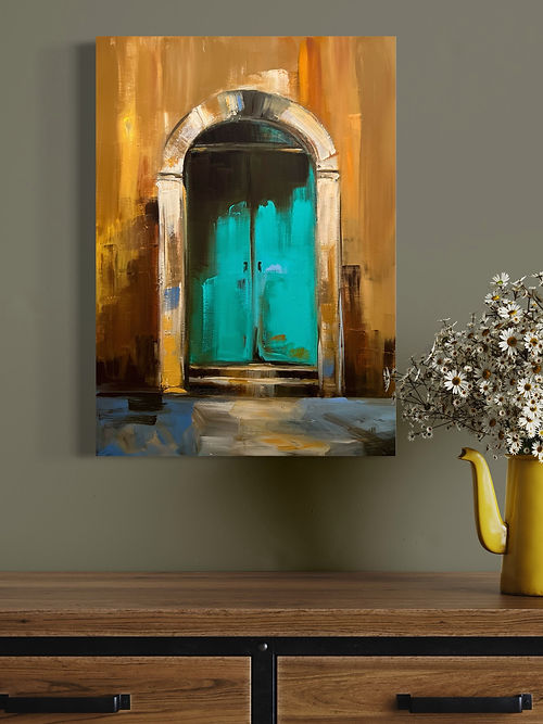 Artwork on supported wooden frame. Ready to hang.