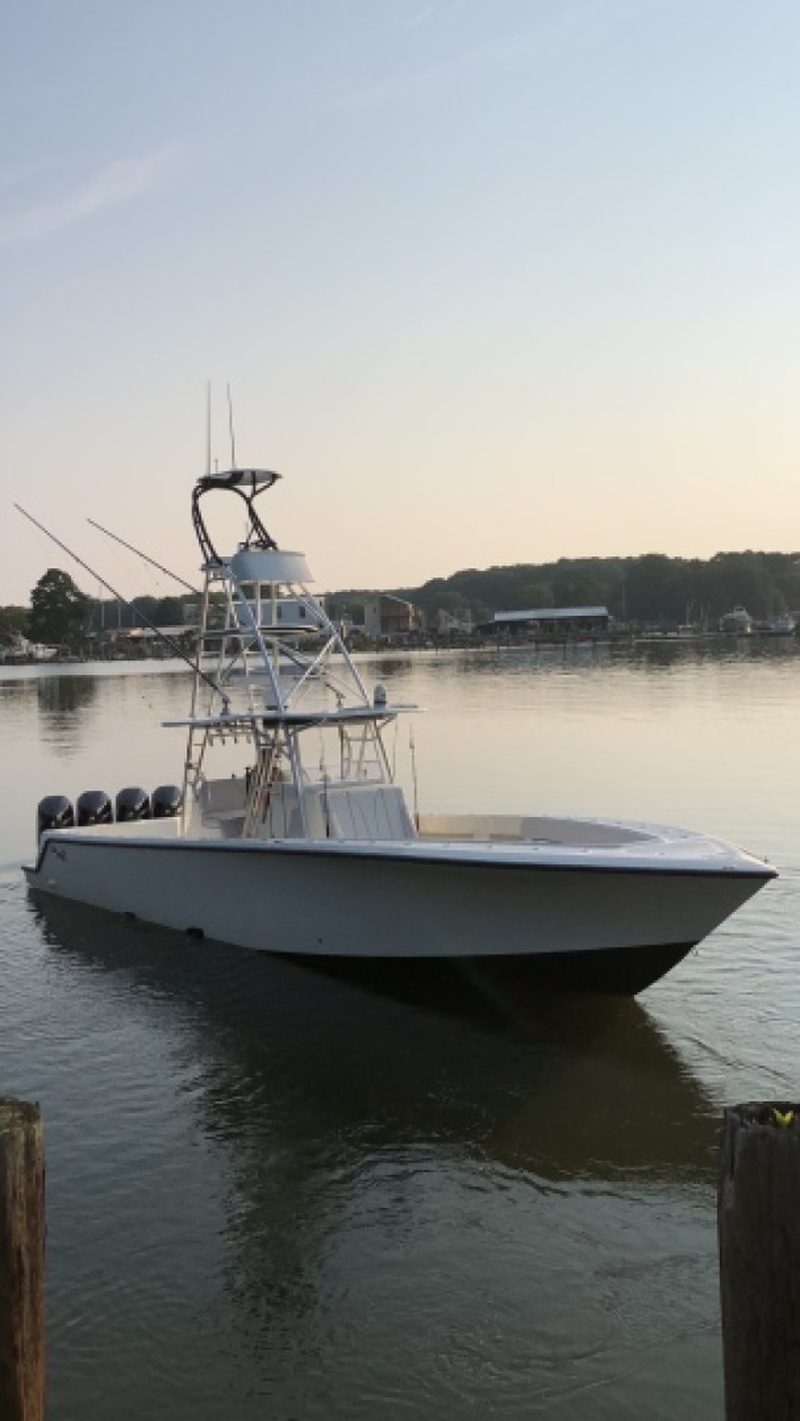 This boat was built for tournament-level fishing in mind. She has a full tower with complete controls, gages, and electronics, as well as full compliment of electronics at her center console helm station. She was outfitted with 42 flush-mounted rodholders in the gunnels, as well as an additional 18 flush-mounted rod holders at the base of her center console. 2 more flush-mounted rod holders are located on the back of the helm seat, and she boasts and additional 11 rocket launchers on her tower legs. Some of her other main features include: