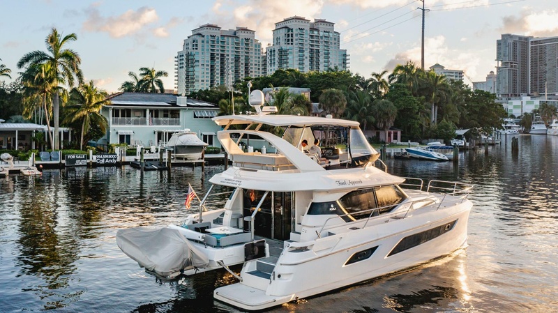 Renowned industry wide for its versatility, innovation and comfort, The Aquila 44 is a cruiser and entertainer’s dream. The layout provides a seamless transition from outdoor to indoor enjoyment. The three-stateroom layout boasts a full beam master stateroom with office and en-suite head forward. Two additional staterooms port and starboard, with large births and dedicated baths. The spacious fly bridge is complimented by a grill, outdoor kitchen, walk through bow, and of course the captains helm.