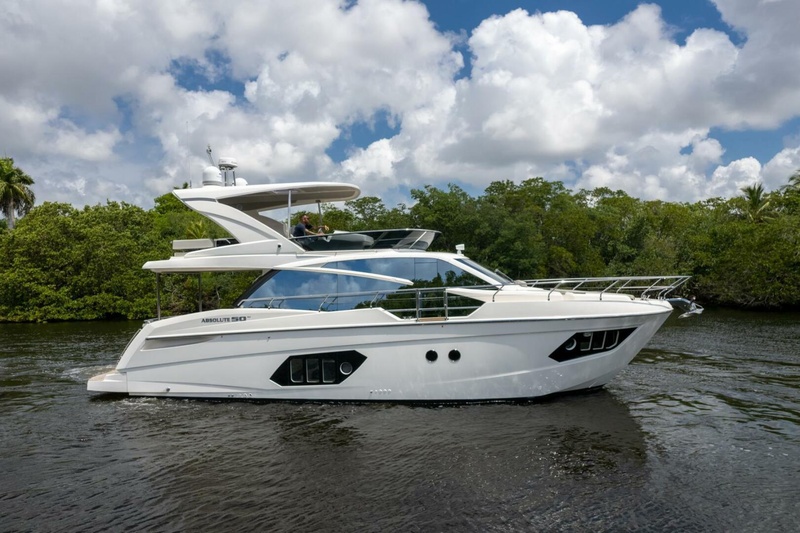 The Absolute 50 Flybridge has a 3 stateroom layout plus crew quarters giving it plenty of room for entertaining. Partnered with the ease of joystick control, AIS , bow thruster, and the newest Garmin active captain technology it allows for more owner operators. The 50 is very well designed and captivates your senses through elegant yet neutral color combinations, fine materials, and exquisite finishing touches. Compare this layout and space and you will see.