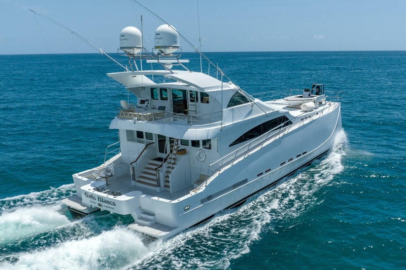 GATO BLANCO is a 75’ Pedigree Power Cat that showcases American ingenuity and maritime craftsmanship. This yacht boasts five guest staterooms, including a full-beam master cabin, and below-deck tender storage. It’s powered by Caterpillar C-12 engines with a max speed of 23 knots and a 1500 nautical mile range. GATO BLANCO is also remarkably maneuverable and can be easily handled by a crew of just two people. It’s professionally maintained to ensure each journey is luxurious, safe, and reliable.