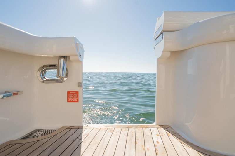 2018 37 Viking Billfish – Gloria Maria sportfish yacht.is a rare find and raises the bar with slick, contemporary styling and modern and more durable materials to offer better performance, easier maintenance, and attractive overnight accommodations. She is built to be a tournament contender that is equally compatible with other fishing ventures. The day boat style offers free access to the 86-square-foot cockpit equipped with a bait freezer, tackle stowage, a transom door with a lift gate, insulated fish boxes and a transom live well. The open salon provides all weather protection with a comfortable U-shape dinette and hi-lo fiberglass table, which converts to a bunk, opposite a cushioned lounge. At the end of the day, there is plenty of room to relax in a comfortable environment, a significant element missing from today’s wide-open large center console boats. The 37′ is also outfitted with a lower helm station, for those looking for style and convenience. The flybridge helm features a center console command station with a single lever and optional joystick controls.