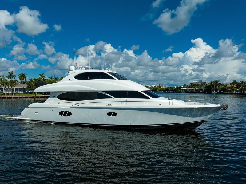 The 2009 84′ Lazzara “GYPSEA”, powered by twin CAT C-32 engines is the perfect combination of speed, comfort, and styling for the family that wants it all. “GYPSEA” has a well-planned 5 stateroom layout (all with ensuite heads) that features a full beam master, dual VIP suites aft, and two additional VIP suites forward. There are two additional crew berths aft and a main deck day head. The skylounge option on this Lazzara 84’ creates an upper deck living area and it features a well-equipped helm with a great electronics package.