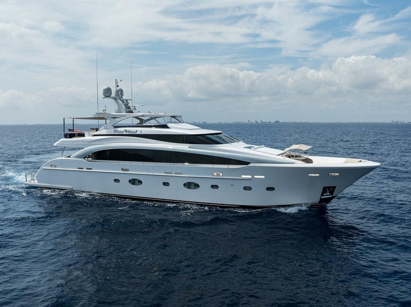 A rare find in today’s market! “Happy Hour’s” wide 25’ beam enables her to boast full walk-around decks while providing owners with an on-deck master and sizeable master head forward. 5 generous staterooms total, modern, tasteful interior décor and woods. Abundant entertainment and living areas throughout to include beach club, large aft deck, large salon and formal dining, and one of the best flybridge layouts available in this size sector. Bahamas friendly draft of under 6’ makes her a natural choice for the East Coast, Bahamas, Caribbean, and West Coast of Florida cruising.