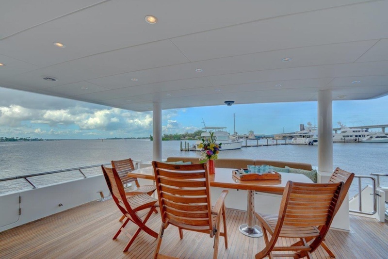 HEARTBEAT features a 4 stateroom and six head layout accommodating 10 owner’s and guests and also has separate crew quarters with two crew cabins ensuite. On the main deck is the galley and a very open, inviting salon which includes a formal dining area and bar. The upper deck consists of a large skylounge and aft upper deck area that offers the best of both worlds.