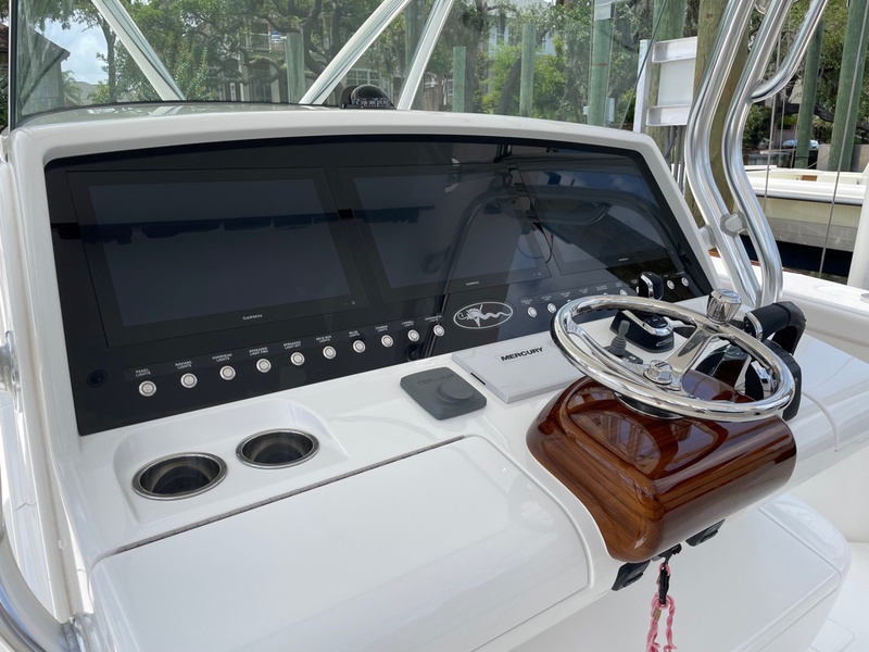 This 2022 41’ Valhalla, “Honcho,” had no expenses spared on her build. With only 100hrs and services just performed she is ready for the summer season. Whether you remove the buggy top for the perfect un-obstructed Cobia boat, or hook tuna tubes or live wells to her pair of on deck feeds, she’s ready to fish anywhere in the world. Her ability to please the pleasure side is also unmatched with her mezzanine seat, lounge seat and FWD seating. She has something for everyone to enjoy. A few options include, a Palm Beach Marlin Tower, Bow Thruster, Optimus Joystick, Seakeeper 3, upgraded Release package throughout, Custom upgraded 2KW transducer, FLIR and much more. She is in better then new condition and an absolute must see.