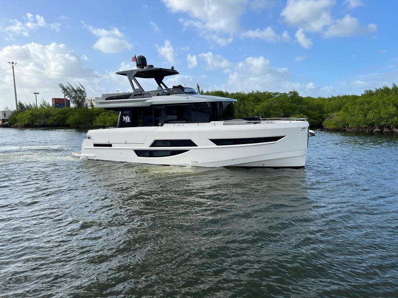 This Used 2022 OKEAN 50 Fly with SeaKeeper Stabilization, and the VOLVO 700 Series IPS engines rated at 550 HP offers a unique design with the open concept our motor yacht clients are looking for. The open deck spaces of the OKEAN 50 Fly creates the feeling of being outside with unobstructed views. This trendy OKEAN 50 Fly demonstrates a design with many innovative features. In terms of performance, the Duo Mode Hull design ensures a light, tough, very economical vessel at displacement speeds. The OKEAN 50 Fly showcases a premium interior space and comfort. With the hydraulically operated balconies in the open position, the overall beam is 20’7″. This OKEAN 50 Fly gives her owners and guests, a feeling of total freedom while on board. Great amounts of volume are found indoors where the galley is located aft and seamlessly transitions into the spacious and functional salon, with an adjustable dining table, and a retractable flat screen TV. Continuing to deliver the bright atmosphere throughout the interior are expansive windows on the main deck guaranteed to provide 360 degree views from any vantage point. The OKEAN 50 Fly flybridge makes for another great spot for guests to lounge outdoors. Aside from a helm station with a full suite of electronics, there is a Wet Bar with refrigerated Icebox and folding Teak table. There is also plenty of comfortable seating with storage underneath. Below deck, overnight accommodations consist of three luxurious cabins including a full beam owner’s stateroom with en suite head. The two guest staterooms share a full head.