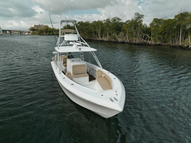 This 37′ Bahama shows impeccably well. She offers an oversized hardtop that is unique to this specific build. Bearing plenty of shade and seating this is the boat to enjoy with friends and family!