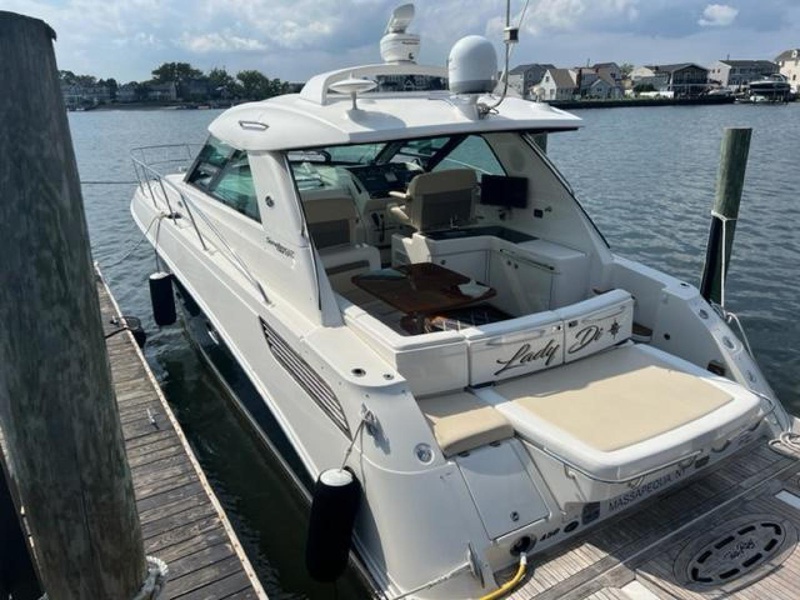 She is completely loaded with extra features such as the gorgeous teak flooring, the extended swim platform, AC/Heat in the cockpit and a full range of Raymarine Electronics.  She makes heads turn the moment she enters the waterways. Ready to hit the water today!!