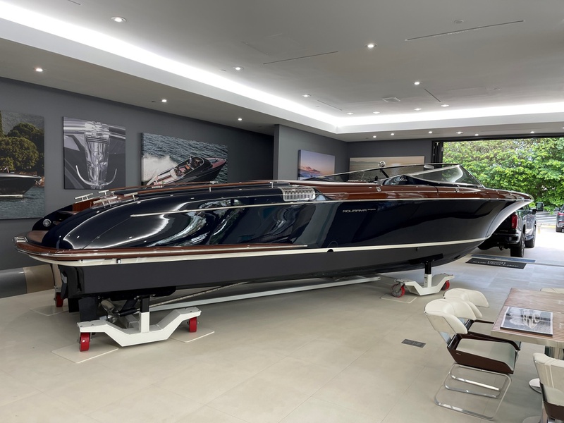 The boat is painted in the most desirable color, of Navy Blue. Hull #245 has been stored mostly undercover and lightly used by a seasoned Yacht owner. The boat comes with a custom painted MYCO trailer.