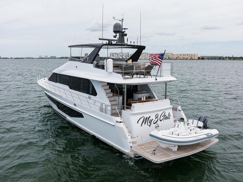 “My 3 Gals” was built by a very knowledgeable yachting family with attention to fine detail and quality throughout. Four staterooms, five heads, with crew quarter accommodations finish her interior. Powered by a very reliable Volvo Penta D13 1000 horsepower IPS350, this Yacht boasts state of the art equipment- from the Clearline Electro Sea system to the Garmin-based Electronics Package. Entertainment is at your fingertips with a Direct/TV based Ultra High Definition KVH TracVision UHD7 and a Fusion S-RA770 Apollo receiver with speakers throughout. She is ready for inspection by her new owners.