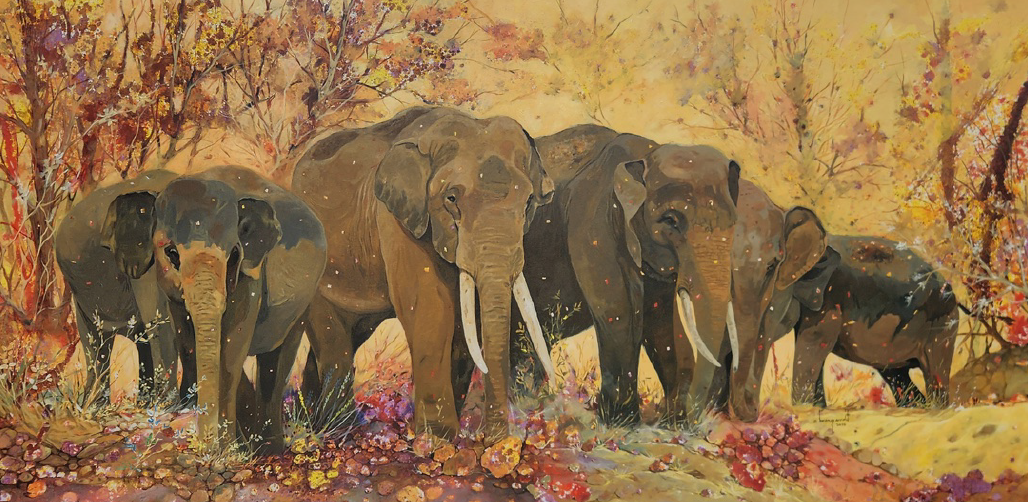 Acrylics on canvas, size 100X200 cm