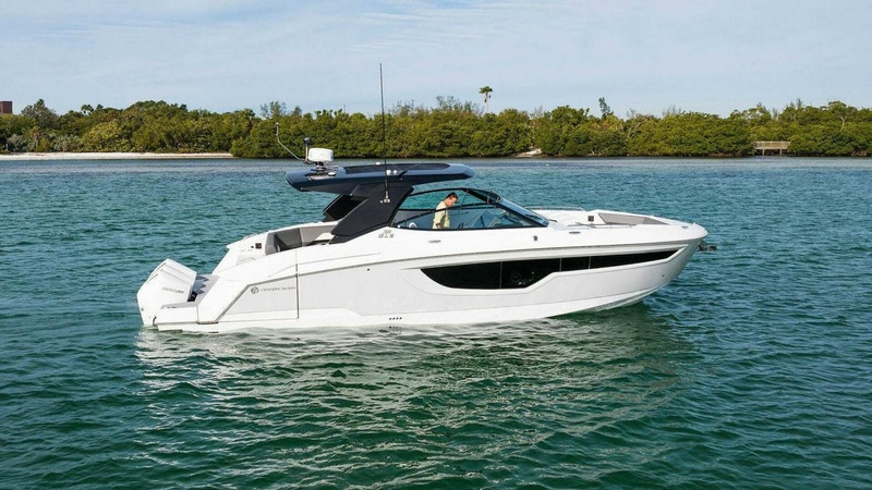 2023 38 Cruisers GLS “One the Rocks” for sale! This 38 GLS is the most highly optioned on the market! She has many upgrades including Sea Keeper, Custom Garmin Electronics, and Reverso Engine flush system! She has been lift-kept under a cover her whole life and it shows!