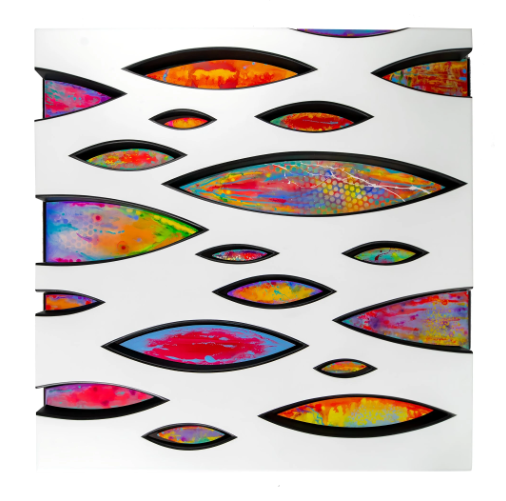 Acrylic, resin on wood canvas with fine epoxy crystal finish