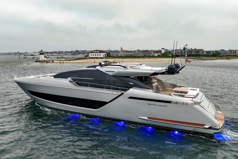 • Access to the swimming platform via fiberglass steps, footboard laid in teak and courtesy lights