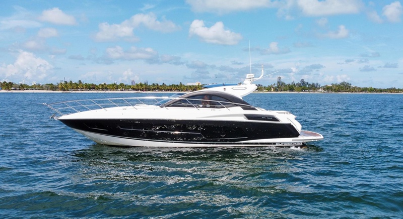 It is pretty safe to say that the Sunseeker San Remo is one of the best-looking yachts in its class. Built with maximum attention to every detail, the Sunseeker San Remo rewards its passengers with luxurious accommodations and an exhilarating ride. Two Stateroom, Two Bath w/stall showers, opening portlights, and hardwood flooring. A desirable full-beam master stateroom features a walkaround queen bed with storage beneath, safe, hanging lockers, and opening portholes with panoramic hull side windows. The forward stateroom offers a twin-V berth that pulls together to make a single berth with an ensuite bath. Outside, two large sun pads and a hydraulic bathing platform are ideal for relaxing in the sun or hosting your own party out at sea. Your own private sanctuary, this exceptional performance cruiser is perfect for days out and long weekends. She’s just completed a fresh hull paint job due to minimal scratches and looks like new.