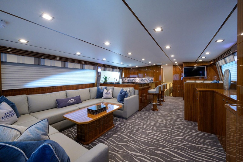 Viking’s prowess in delivering a legendary sportfish masterpiece has never been more pronounced than now. Step aboard this unbeatable 2018 Viking 80 Convertible; The ‘Pari Passu,’ and experience the ultimate powerhouse of a sportfishing machine. As an iconic platform on the tournament fishing circuit, the ‘Pari Passu’ is fully rigged and professionally maintained by a full-time career captain and crew. This 80′ convertible is powered by twin 2635MPH 16-cylinder MTU M96L diesel engines that deliver impressive speed, efficiency, and maneuverability that have MTU Extended Protection Coverage.