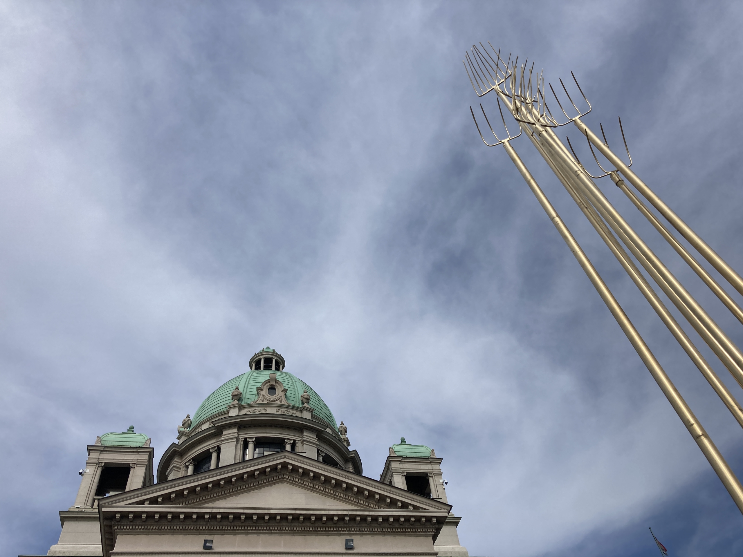 I had made this work much before it was exhibited because a rebellion had been boiling in me due to very difficult living conditions for the vast majority of citizens, due to the rule of lawlessness in which crime and corruption flourish. However, in the public eye, only toys for supernumerary kids had appeared, while the pitchfork from the same “project” had to wait for the right opportunity. And then, due to pushing mountain rivers of Stara Planina Mt. into pipes for the construction of mini hydroelectric power plants, a call to arms from eco-activists came, for an Environmental Uprising, which was supposed to start with a large protest rally in front of the National Assembly Building in Belgrade.