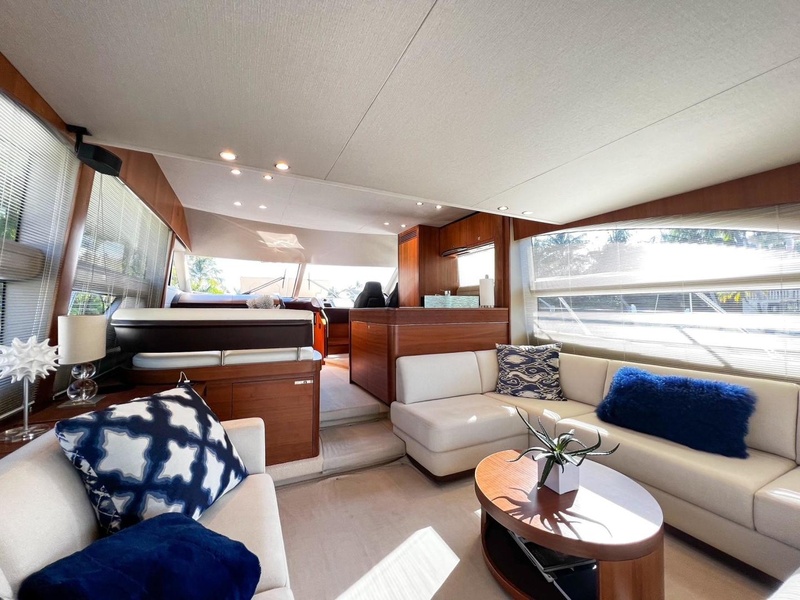 PHARMASEA is a super clean example of the popular 56 Princess Flybridge. She has 855 hours on her quiet and powerful MAN 800 Common Rail engines. This late model Princess is one of the very few that has ever come up on the pre-owned market with 3 elegant staterooms, Garmin electronics, and crew quarters. This is a must see vessel in the 55 to 60′ flybridge sport yacht range.